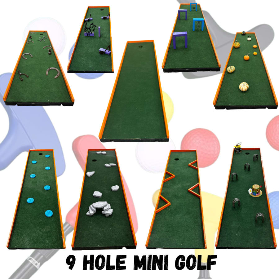 Our 9-hole mini golf course is the perfect addition to any event, offering fun for all ages! Whether you're celebrating a birthday, hosting a team-building activity, or enjoying a casual get-together, this mini golf setup provides an exciting and interactive experience. We also offer flexible options with 2, 3, and 6-hole courses, allowing you to customize the game to suit your event's space and size. Our mini golf course is designed for convenience and can be set up both indoors or outdoors, making it an ideal choice for any weather or venue. With a variety of challenging holes and obstacles, it’s guaranteed to keep everyone entertained and make your event unforgettable. Pair it with another Mini golf option or choose from any of our other sports games or inflatables. Serving Memphis, Cordova, Collierville, and surrounding areas, as well as Mississippi and Arkansas. Contact us today to book your event!