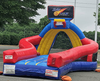 Get ready to elevate your event with the Slam Dunk Basketball Challenge! Perfect for any occasion, this inflatable challenge lets players take a running start and leap off the reinforced jump pillow to SLAM DUNK like a pro! It’s big FUN in a small package, offering hours of entertainment for all ages. Whether you're hosting a birthday party, school event, or corporate gathering, this inflatable challenge keeps the crowd engaged and active. Suitable for both adults and children, it's easy to set up and can be used indoors or outdoors. Proper supervision is required for safety, and dunking on another player is not recommended. Bring the thrill of the game to your event with the Slam Dunk Basketball Challenge, its pairs well with Quarterback Snap or the Soccer Kick! We offer delivery throughout Memphis and the surrounding Mid-South area, including Germantown, Bartlett, Arlington, Collierville, East Memphis, Lakeland, Hernando, and Millington. Whether you’re hosting thrilling obstacle courses, competitive inflatables, or exciting carnival games, we have your event covered. We also serve Frayser, Horn Lake, Southaven, and Oakland. Wherever you are, we’re here to deliver the fun to you!