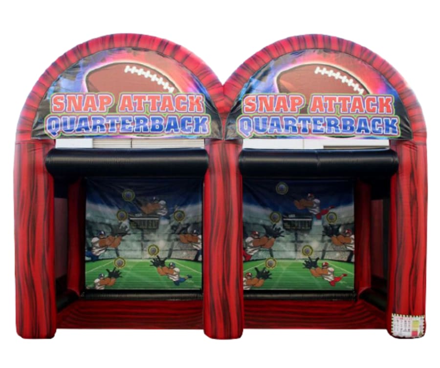 The Quarterback Snap Attack Inflatable is an action-packed, sports-themed bounce house that brings the thrill of football to your event! Designed for sports fans of all ages, this interactive inflatable offers an exciting twist on traditional fun. Participants can test their skills in a variety of football challenges, including a "quarterback challenge" where they throw footballs through inflatable targets or race against the clock in a timed snap-and-pass contest. Perfect for outdoor gatherings, birthday parties, or any event where high-energy fun is the goal, the Quarterback Snap Attack Inflatable will keep everyone engaged and active. Proper supervision is required for all inflatable activities to ensure safety and fun for all participants! We offer affordable party rentals and different packages to choose from for Memphis and the surrounding areas.